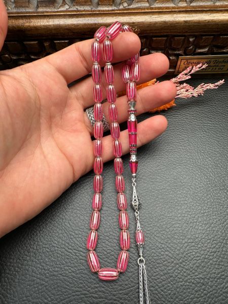Gümüş Yarma İşlemeli Ateş Kehribar Tesbih